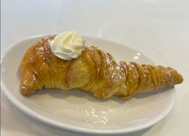 It is an elaborate dessert made with multiple layers of paper-thin dough arranged in a clam-shaped pocket, filled with an egg based filling which when cooked expands leaving a hollow shell. It is then Filled with a vanilla bavarian cream filling and topped with powdered sugar. Comes in four flavors Vanilla, Nutella, Pistachio, & Cannoli Cream